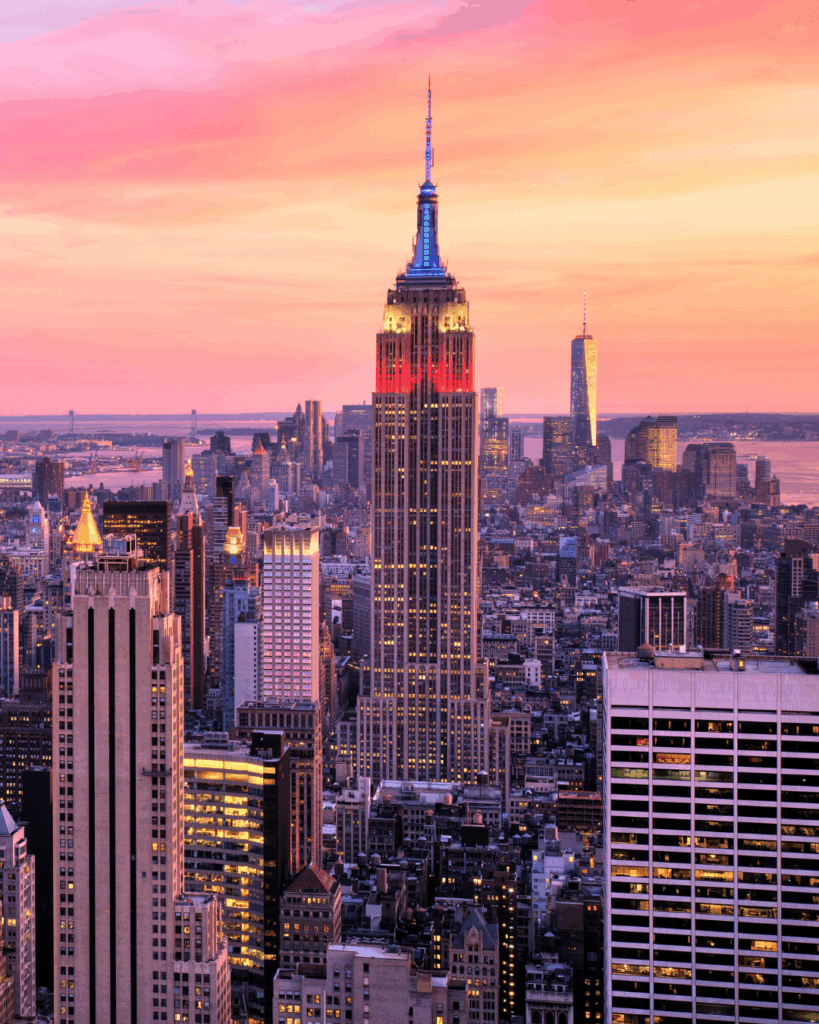 Empire State Building: Aussicht pur – tagsüber oder romantisch beleuchtet bei Nacht.