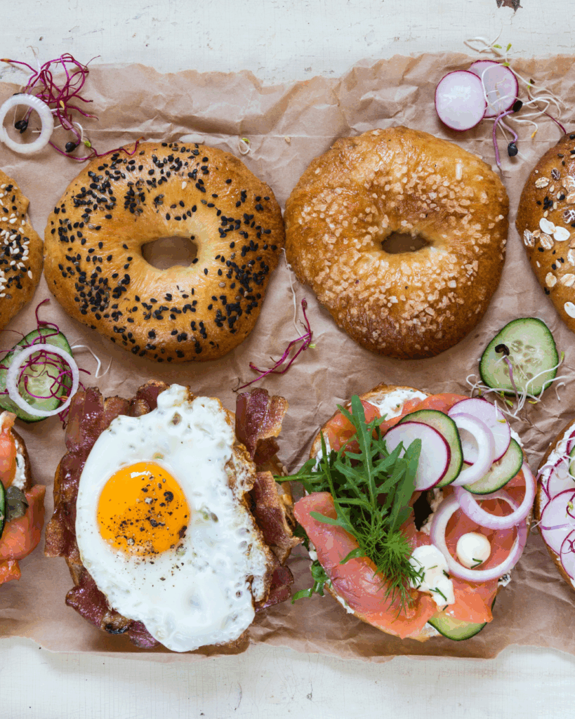 Bagels & Doughnuts: Der Bagel ist das Frühstücks-Symbol New Yorks. Probiere einen „Everything Bagel“ mit „Scallion Cream Cheese“ oder klassisch mit Lachs. Doughnuts werden gern in unabhängigen Shops, aber auch bei Dunkin‘ zum Coffee to Go gereicht.